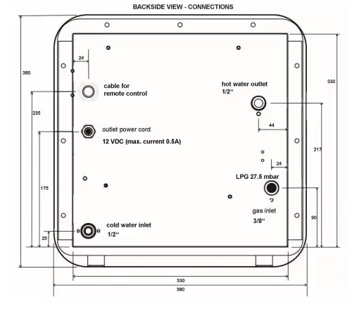 IMASS Instantaneous water heater type Boiler gas and 12V for caravans, motorhomes, camper and 4x4 overland. - Ref. IWH-1