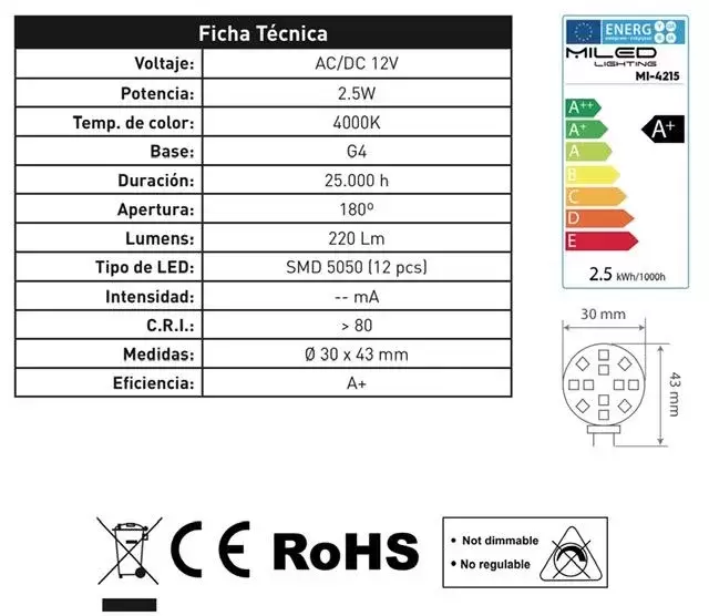Led bulb 220 lumen 4000K neutral light for caravans, motorhomes and camper. - Ref. 2-MI-4215