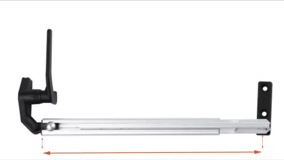 *The measurement is taken with the compass closed and exactly in the place where the arrows in the photograph indicate, from the beginning of the aluminum where the closing handle is located to the center of the hole in the anchor bracket to the frame.