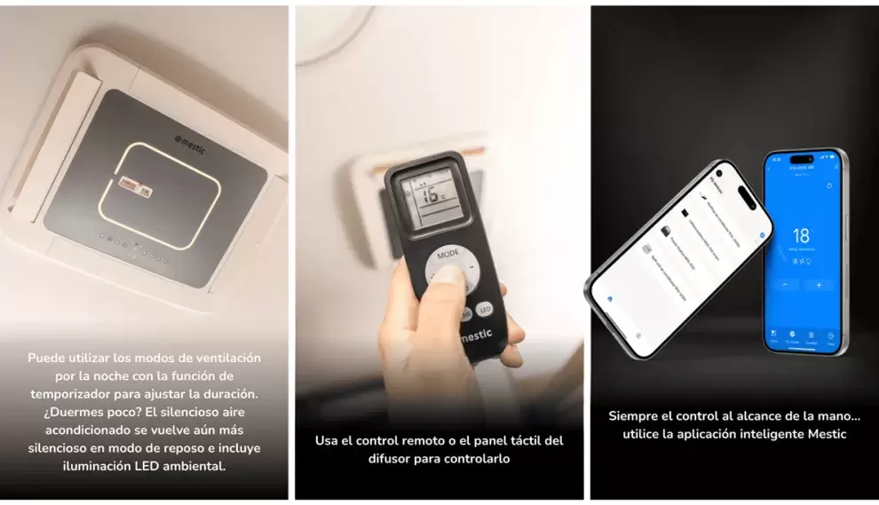This model differs from the previous model in its more stylized white interior ceiling color. It can be controlled via mobile phone via Bluetooth and also via Wi-Fi from anywhere to connect the air conditioner as long as your unit is connected to a Wi-Fi network.