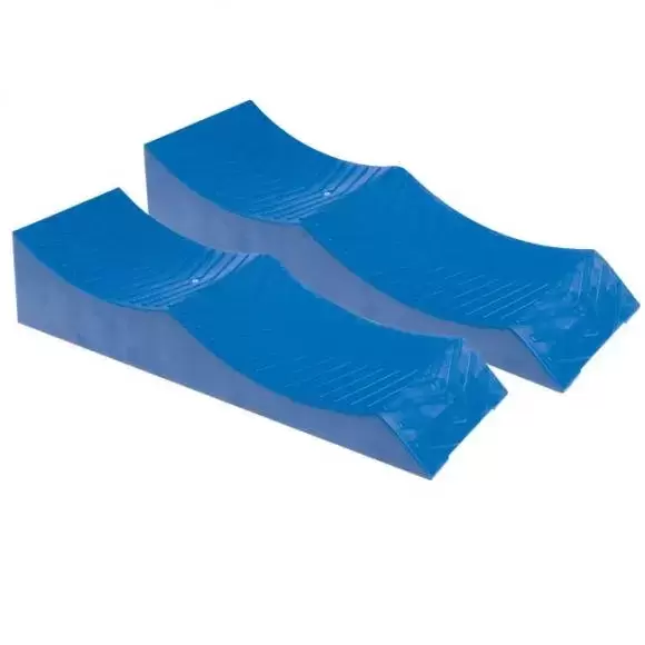 Set of leveling chocks designed for motorhomes, due to their shape they limit the deformation of the tires during prolonged parking, made of high-density polyethylene treated with anti-UV with a transport bag included.