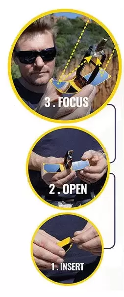 The SUNCASE GEAR solar lighter spreads its wings and concentrates the sun's rays on a focal point to light up in 3 seconds: wood, brown paper, tobacco, incense (...).