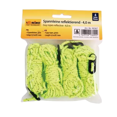 Classic rope with quick release in a striking green colour. Reduces the risk of tripping at dusk. Length 3m, Ø 3mm. 4 pieces.