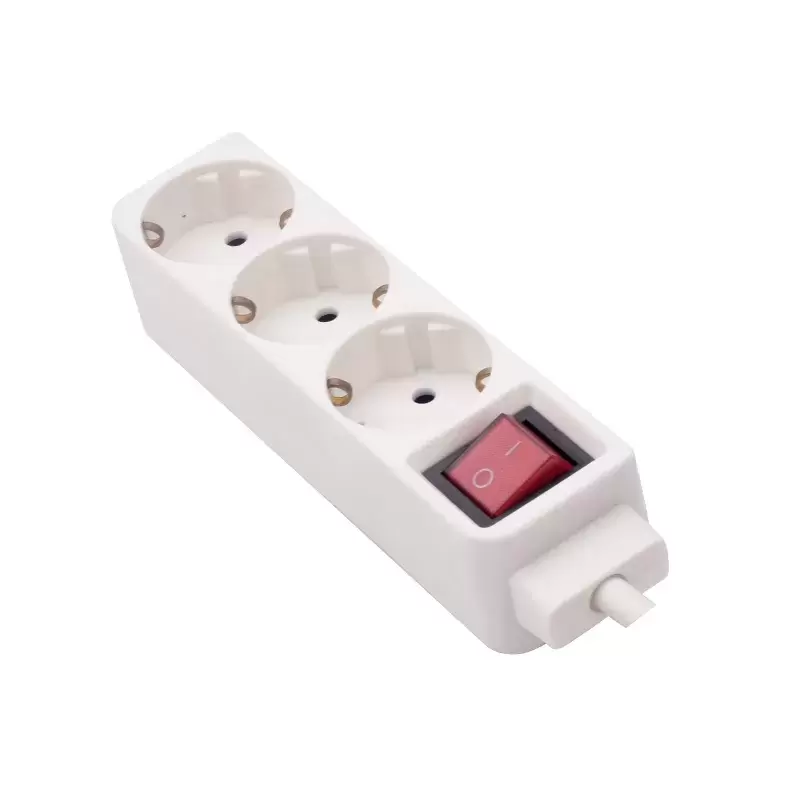 Multiple base extension cord with 3 outlets and 230v/16a switch 3 meter cable for multiple uses.