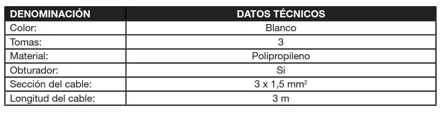 Multiple base extension cord with 3 outlets and 230v/16a switch 3 meter cable for multiple uses. Ref. LU-3011