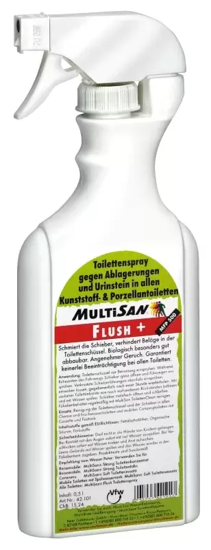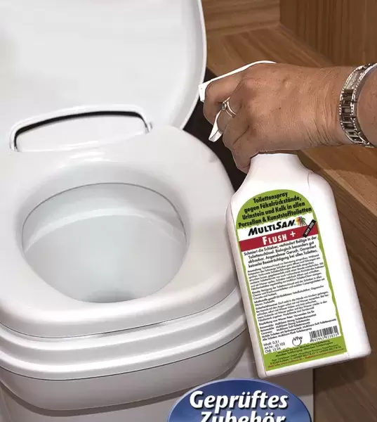 Clean the stool container regularly with MultiSan toilet clean. Application: Cleaning the toilet bowl and slide in all chemical and freshwater toilets and mobile camping toilets with cassette and fixed tank.