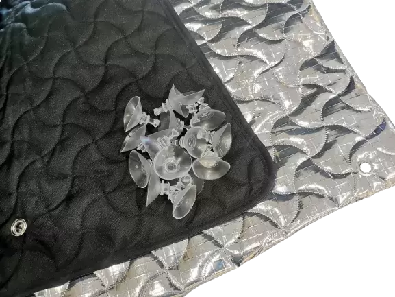 The kit consists of 3 pieces (front and side windows of the cabin) and suction cups. Includes carrying bag.