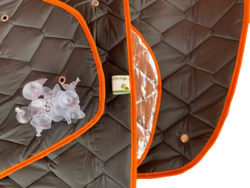 The kit is composed of 3 pieces, front and side windows of the cabin plus suction cups plus transport bag.