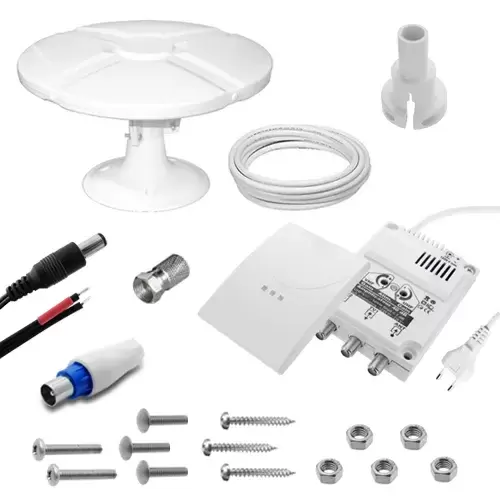 Omnidirectional antenna and mast TONNA 263590 with 40db amplifier for caravans, motorhomes and camper.