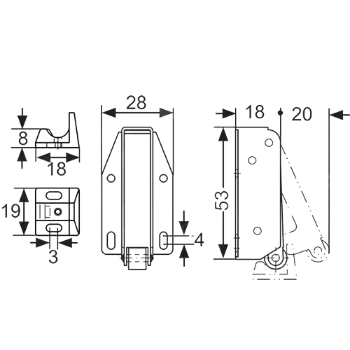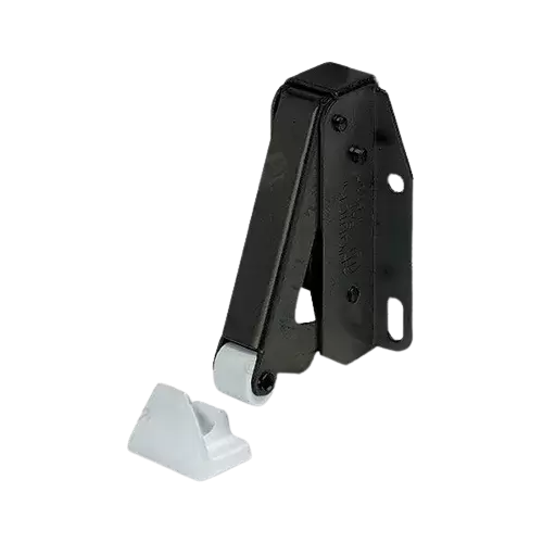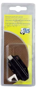 Push-button closure for doors and cabinets for motorhomes, caravans and campers.