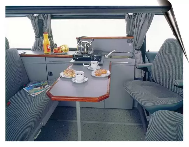 Aluminum rail to easily fix and remove the table from the motorhome wall, with a system that allows us to slide the table forwards or backwards to adapt it to the size we need.