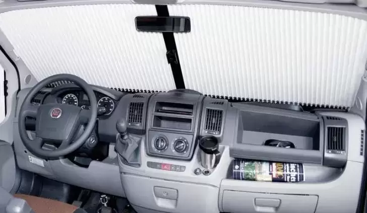 Comfortable, easy, fast and aesthetic, the Remis front blind integrates perfectly into your vehicle, providing comfort and privacy for Fiat Ducato cabins from 2014 X290 beige tone