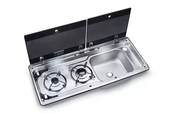 Replacement left glass cover for Dometic kitchen/sink in caravans, motorhomes and campers.
