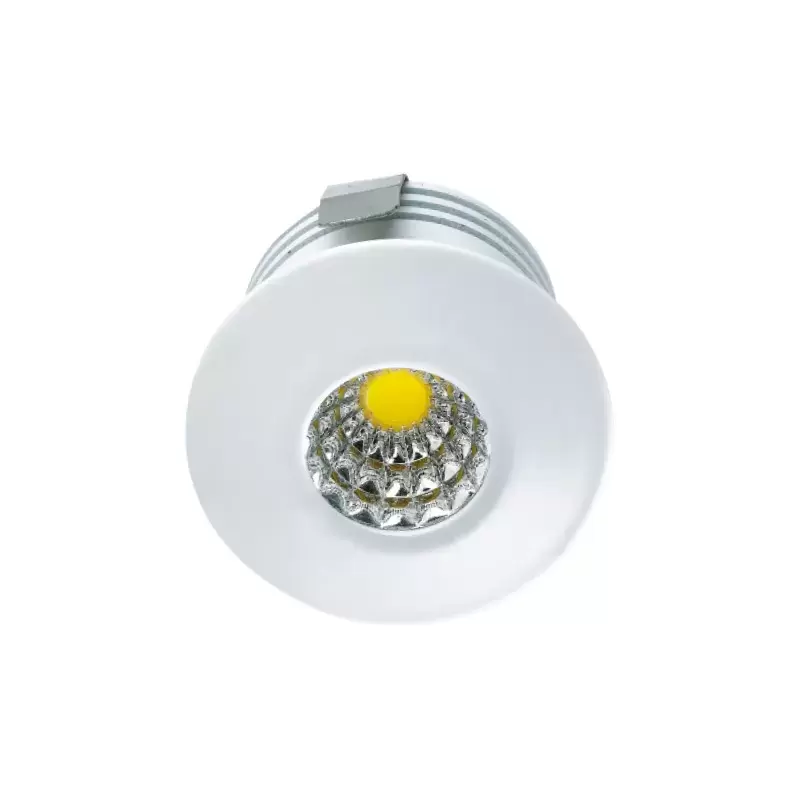Round 12V white COB LED spotlight for recessed mounting in caravans, motorhomes and campers.