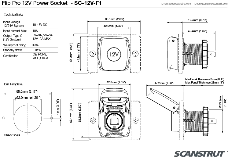 SCANSTRUT 12V female socket with protective cover for caravans, motorhomes, campers and 4x4 overland.