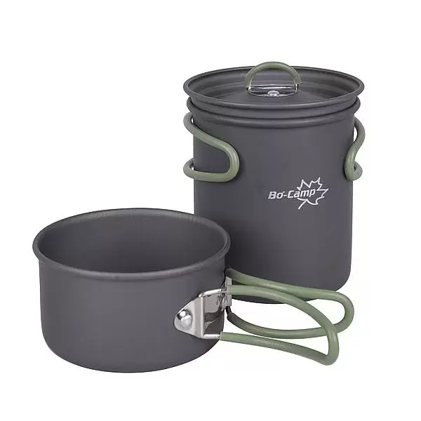 Set of 2 mini cooking pots with lid and folding handles BO-CAMP, special for camper, overland and caravaning.