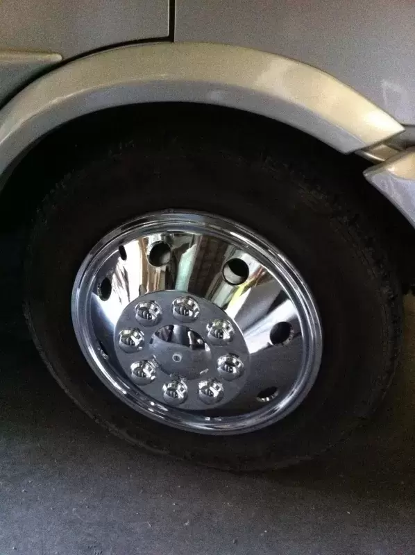 Four motorhome hubcaps for 15" rims in chrome finish, robust plastic construction.