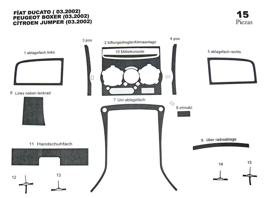 Set Dec. dashboard Fiat Ducato 03.2002>15 pcs. wood - Ref. CRU102