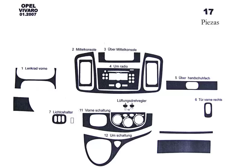 Set Dec. dashboard Opel Vivaro motorhome 01/2007 17 pieces