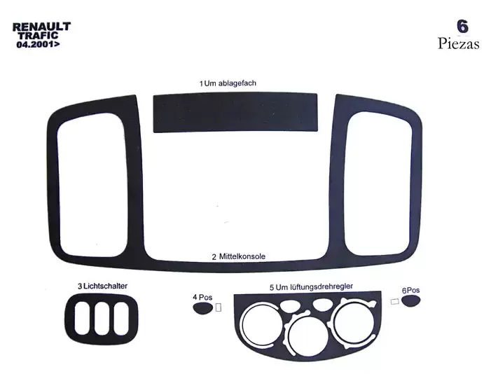 Dashboard decoration kit for Renault Traffic from April 2001 onwards.