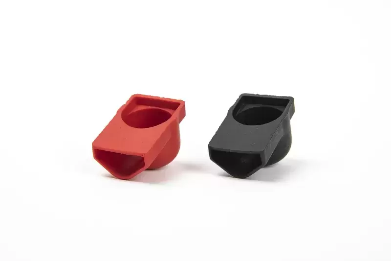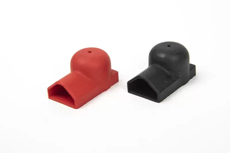 Set of rubber caps for battery terminals for caravans, motorhomes, campers and overland 4x4s.