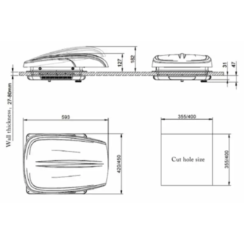 High quality skylight with surprising features at an unbeatable price with fan, air inlet to the inside of the vehicle and to the outside as you wish.