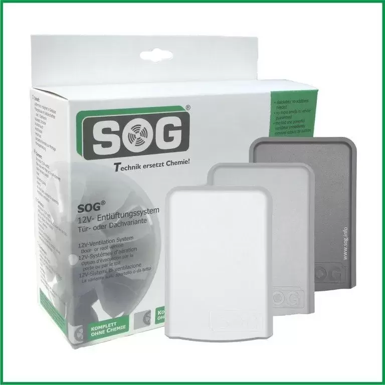 Specially developed extractor fan 12 V / 0.43 W. Extracts unpleasant odors and passes them through an activated carbon filter for outdoor use.