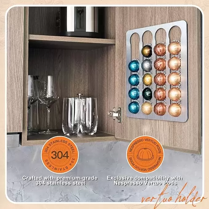 Stainless steel holder for Nespresso coffee machine capsules, caravans, motorhomes and campers.