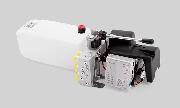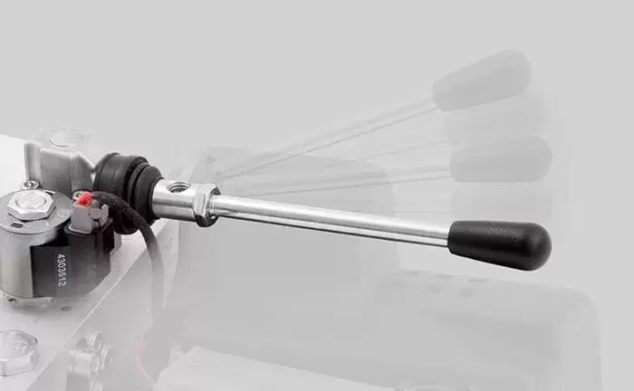 A manual pump allows the jacks to be retracted even in the event of a power failure and guarantees safety in the event of a failure.