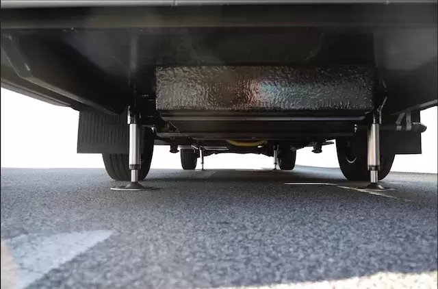 State-of-the-art hydraulic system that, through 4 telescopic stabilizers, levels the vehicle on any surface.
