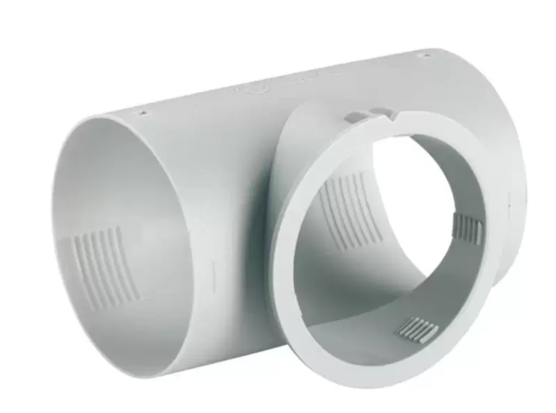 Connector for 65mm heating tube in the form of a T with the central mouth to give an outlet to the air diffuser with hatch Ref.72143