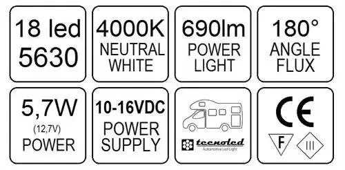 TecnoLed oval ceiling lamp 12v 18 Led surface caravan motorhome camper - Ref. LUC549