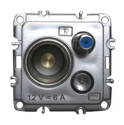 Multi-socket for television with 12v socket and connections for antenna and satellite.