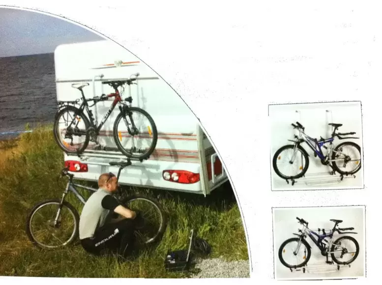 Bicycle rack for two bicycles convertible into three bicycles, special version of the Sport model intended for mounting Fiamma fixing brackets pre-assembled on some vehicles.