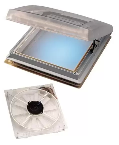 It can be placed in a 40 x 40 cm opening (standard skylight size) Ceiling thickness: 25 to 50 mm. Permanent ventilation Voltage: 12 V. With mosquito net and opaque blind.