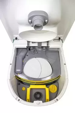 Closed system: This Tiny series model contains both liquid waste and solid waste in two separate containers in the toilet. If the bathroom is used by two people in a permanent residence, the solid waste collection container must be emptied once a week. The urine container should be emptied 2 or 3 times a week. Thanks to the sensor-based urine container fill level indicator, the Separator logo on the toilet lights up red when it needs to be emptied.