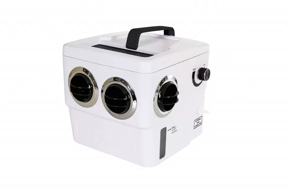 The Transcool portable evaporative cooler is robust, lightweight, compact and uses little energy.