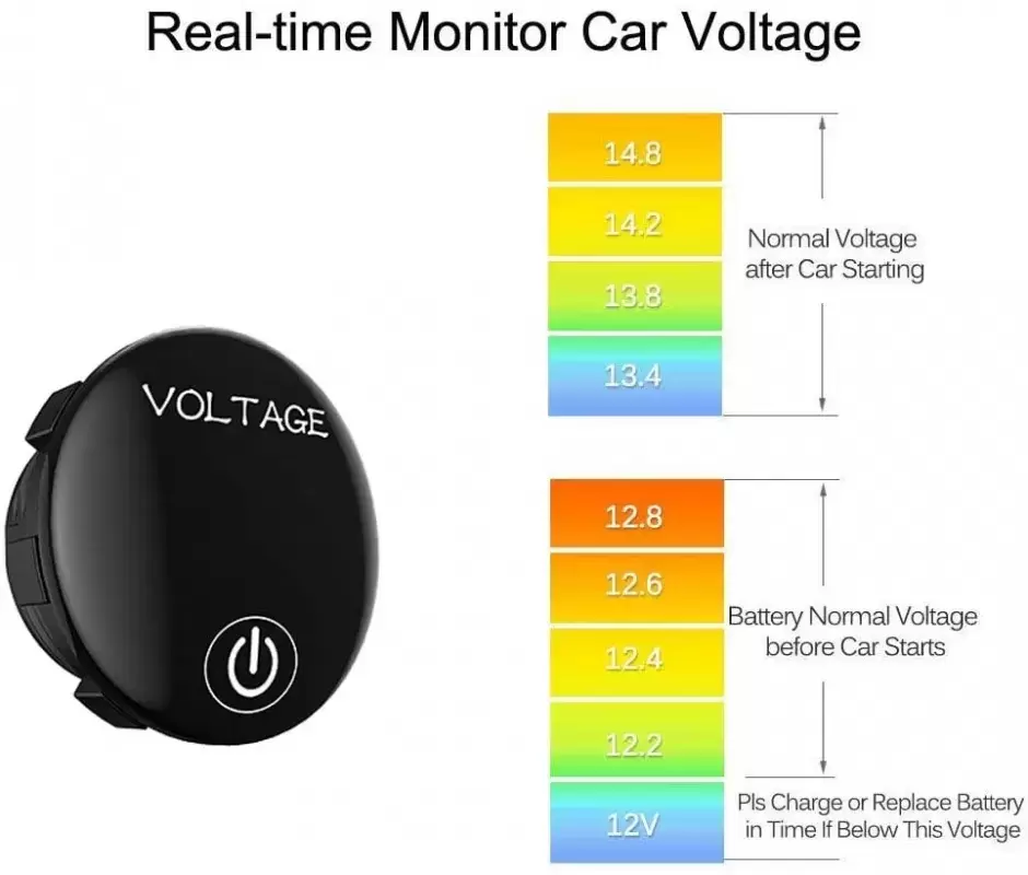 Voltmeter and percentage of battery 12V 5-48V with built-in switch for caravans, motorhomes, camper and 4x4 overland.