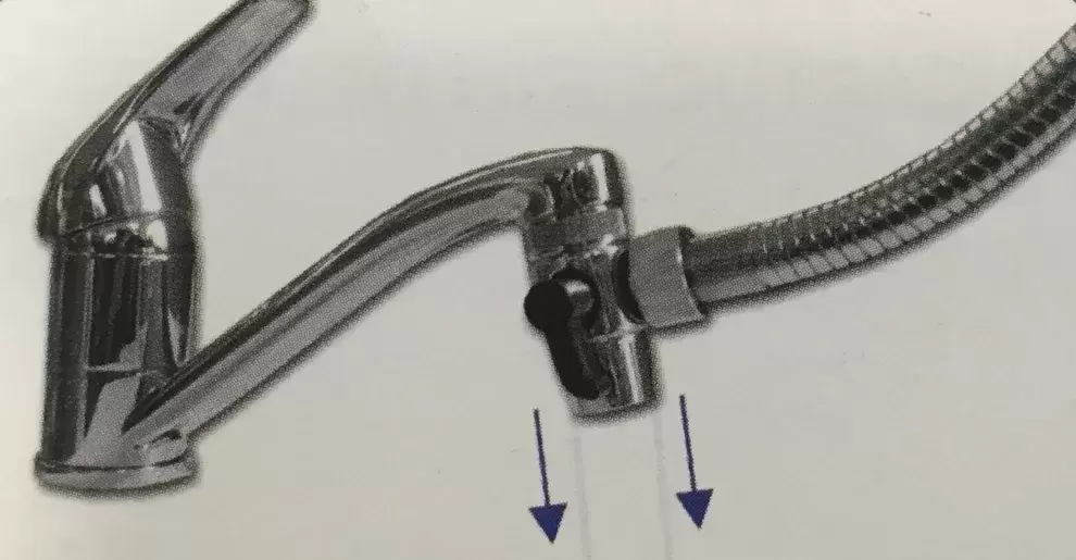 In the normal position, water flows normally out of the jet switch and turning the lever diverts the flow of water from the aerator to the hand shower.