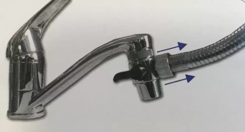 Water diverter adapter for caravan, motorhome and camper faucets.