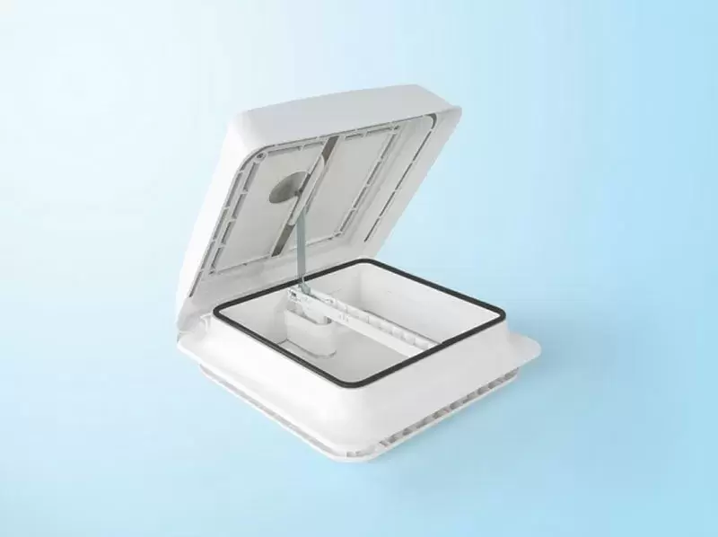 Fiamma 40x40 skylight with white cover.