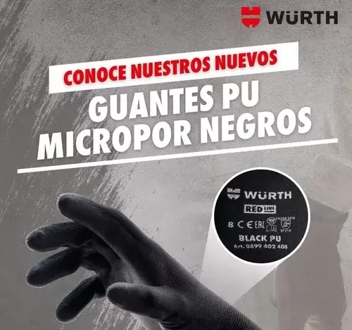 WURTH T9 black microporous PU gloves, pack of 12 pairs.