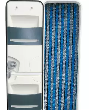Gray roller door blind with slats, rails, curves and profiles for caravans, motorhomes and campers. Reference 53044 €107.80 Out of stock